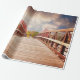 Envelopper le papier avec une photo pittoresque. Un pont en bois qui mène à un chemin entouré d'arbres forestiers qui changent de couleur.