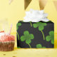 Un motif répétitif de quatre feuilles chanceuses sur un arrière - plan noir. Ce enveloppement cadeau est un bon choix autour de la Saint Patrick's Day ou pour adieu, promotion, retraite et autres occasions de souhaiter bonne chance à quelqu'un.