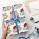 Papier Cadeau poupée de chiffon et ours en peluche sur blanc