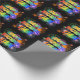 Ce papier d'emballage amusant et animé sur le thème de l'anniversaire comporte le message "HAPPY BANTHDAY, LIAM", ayant un motif dégradé coloré inspiré du spectre arc-en-ciel, et un feu d'artifice festif passionnant inspiré par les arrière - plans motifs. Un papier d'emballage coloré comme celui-ci pourrait être utilisé lors de la préparation de cadeaux donnés pour célébrer l'anniversaire de quelqu'un nommé Liam. [~Z0000456]