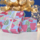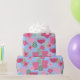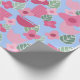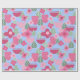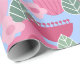 Ce papier d'emballage a un design scandinave de fleurs et de feuilles dans différentes nuances de rose et de vert sur un champ de bleu.