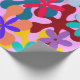 Ce papier d'emballage a une conception rétro des années 1970 de fleurs qui se chevauchent en rouge, bleu, violet, jaune, orange et rouge. Coloré, lumineux et amusant.