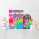 Ce papier d'emballage a un design des années 1970 de fleurs dans différentes couleurs.