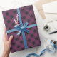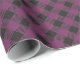 Purple buffalo plaid wrapping paper featuring a black and purple checkered pattern.