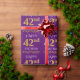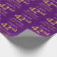 Ce design papier d'emballage comporte un message comme "HAPPY 42nd BIRTHDAY", avec le "42nd" ayant une apparence fausse/imitation or. Il porte également un nom personnalisé et un arrière - plan de couleur violette. Il pourrait peut-être être utilisé pour envelopper les cadeaux donnés pour le quarante-deuxième anniversaire de quelqu’un. [~Z0000134]