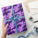 A photography based pattern of purple hepatica flowers on dark blue background.