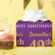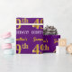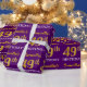 Ce design papier d’emballage comporte un message comme "49e anniversaire de Samantha!", avec le "49e" ayant une apparence de couleur fausse/imitation or. Le nom peut être customisé, et l'arrière - plan est violet coloré. Il pourrait peut-être être utilisé pour envelopper les cadeaux donnés pour le quarante-neuvième anniversaire de quelqu’un. [~Z0000182]