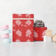 Papier d'emballage personnalisé pour geeks avec des flocons de neige blancs et motif de code QR avec Joyeux Noël! message sur rouge. Vous pouvez utiliser l'un des nombreux services en ligne pour générer votre propre QRcode et personnaliser ce papier d'emballage cool avec votre propre message de vacances, le logo de l'entreprise ou l'URL du site Web personnalisé.