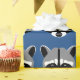 Conception simple et audacieuse d'un Raccoon noir, blanc et gris aux yeux tristes.