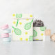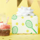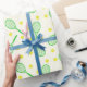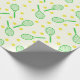 Le papier à envelopper pour les amateurs de tennis présente des raquettes de tennis vertes et des balles de tennis jaunes dans un motif éparpillé.