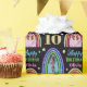 Des arcs-en-ciel en parties scintillant or, rose, bleu, vert et violet entourent une photo voûtée de la fille d'anniversaire sur du papier d'emballage d'anniversaire noir. Personnalisez facilement les photos, le nom et l'âge pour un 10e anniversaire personnalisé ou pour n'importe quelle année. Enveloppez vos cadeaux dans du papier glamour pour votre fille d'anniversaire glitzy.