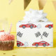 Fête d'anniversaire à thème de course rapide inspirée des voitures de course rétro rouge et à damiers drapeaux noir et blanc papier d'emballage. Idéal pour les fêtes d'anniversaire sur le thème de la course et du thème de la voiture.