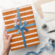 Papier cadeau rayé horizontal orange brûlé et blanc
