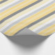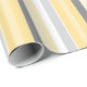 Papier enveloppant présentant un design contemporain avec une combinaison harmonieuse de rayures jaune ensoleillé, gris moyen et blanc immaculé, créant un impact visuel frappant qui ne manquera pas de séduire tout destinataire.
