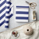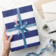 Le bleu marine a barré des coordonnées nautiques de papier d'emballage de couleurs avec notre collection nautique d'emballages cadeau.