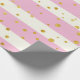 Papier Cadeau Rayures roses et blanches pois dorés