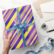 Papier à enveloppement moderne et élégant, rayures violettes et jaunes. (La couleur de la bande violette est légèrement inégale, ce qui fait partie du design, pas une erreur d'impression.)