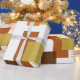 Ce papier d'emballage a un design moderne du milieu du siècle de rectangles et lignes dans les couleurs des années 1970.