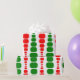 Ce papier d'emballage de Noël a un design moderne du milieu du siècle de rectangles ronds rouges et verts de taille croissante et décroissante, tournant verticalement sur un champ de blanc.