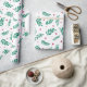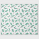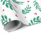 Papier d'emballage blanc festif imprimé avec un motif classique de feuilles vert aquarelle et de baies rouges. Parfait pour emballer les cadeaux de Noël. Bon choix pour les amateurs d'hiver, de bois et de style rustique.
