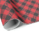 Red buffalo plaid wrapping paper featuring a black and red checkered pattern.