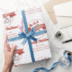 Ce design comprend un design papier d'emballage de Noël avec un motif de vacances moderne, un rétro vintage, festif rouge et blanc, Santa Claus, avec une balade en traîneau de rennes, un joli jeu fantasque, script de typographie, calligraphie, enveloppement cadeau unique