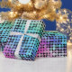 Un dégradé numérique arc-en-ciel qui se reforme hors de l'obscurité. (Cette version de la conception est dimensionnée à 18 pouces par répétition unique, pour mieux s'adapter aux dimensions du papier d'emballage.)