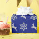 Cet élégant papier d'emballage de vacances présente un motif alternatif de rennes en fausse parties scintillant argent et d'images de flocs de neige. Les images sont placées sur un arrière - plan bleu foncé. Elégant et festif pour la saison des Fêtes, et tout au long de l'hiver! *Veuillez noter que l'image est imprimée et ne contient aucune parties scintillant réelle.*