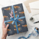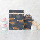 Papier Cadeau renards aux flocons géants sur bleu foncé