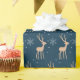 Elégant et moderne papier cadeau de Noël bleu avec un motif renne et flocon de neige.