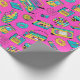 Papier Cadeau Retro 80s amusant Neon rose brillant Motif de musi