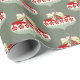 Papier Cadeau Retro Noël Rouge Blanc Vert Ornement