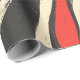 Bold wavy stripes in red, cream, and charcoal black with distressed vintage texture. This dynamic abstract pattern features organic, flowing lines with hand-painted character and mid-century modern color sensibility. The high-contrast palette and rhythmic movement create visual energy perfect for bold gift presentation, retro themes, and contemporary designs.