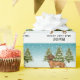 L'illustration originale de Destei d'un mignon chien de race Rhodesian Ridgeback. Le chien est placé dans une scène hivernale avec trois sapins verts. L'arrière - plan est un dégradé bleu à blanc qui donne un aspect froid d'hiver. Il y a une zone de texte personnalisable qui se lit maintenant : "Joyeux Noël !" avec un nom personnalisé.