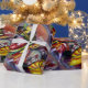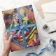 Elégante, lunatique, peinture artistique avec magie colorée de la nuit, la lune, féeries, chevaux en bleu turquoise vif, rouge, jaune, couleurs blanches.Peinture acrylique sur toile, peinture mixte de média avec feuille d'or et d'argent.