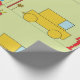 Un robot à l'allure rétro se tenant à côté d'une voiture jaune. Cette conception semble vraiment efficace sur ce papier d'enveloppement