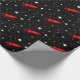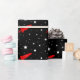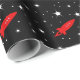 Papier d'emballage comportant une fusée rouge parmi des étoiles dans le noir noir d'encre de l'espace !