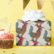 Regard délirant, poule bleue, coq, sur emballage cadeau.