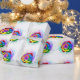 Grand rose fleuri avec pétales arc-en-ciel sur arrière - plan blanc, peint sur des éclaboussures de peinture colorée et lumineuse. 3d