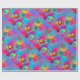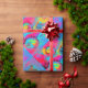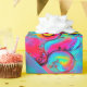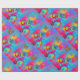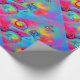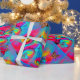 Papier Cadeau ROSE BLEU turquoise FLEURS BLANCHES, BOUTEILLES D'