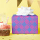 Un rouleau de papier d'emballage brillant, avec un motif imitation patchwork en Magenta, rose vif, turquoise, bleu brillant et violet.