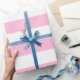 Papier Cadeau Rose Bonbon Blanc Rayé Horizontal Large