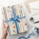 Papier Cadeau Rose Pâle Or Aquarelle Fleurs Rayures Anniversaire
