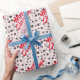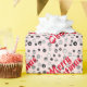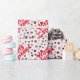 Papier d'emballage unique, moderne, rétro rose pastel et rouge Joyeux Noël avec des ornements d'arbre noir et blanc mignons, motif dessiné à la main.