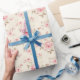 Enveloppement cadeau Rose Peint rose doux avec arrière - plan crème pâle.