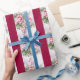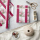 Ce papier d'emballage comporte une conception carrelée des roses vintages roses avec le feuille vert. Les rayures roses foncées peuvent être customisées si désirées.