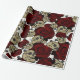 Papier Cadeau Roses Rouges & Crânes Fleuris Gothiques Blanc