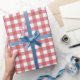 Joli emballage cadeau, dans un motif de chèque En vichy rouge et blanc.