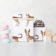 Illustration originale de Destei d'un joli manteau lisse rouge et blanc Ibizan Hound / Podenco Ibicenco race dog en motif.