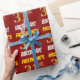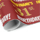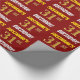 Ce papier d’emballage comporte un message comme "FIRSTNAME’S 31st BANTHDAY!", avec le "31st" ayant une apparence de couleur fausse/imitation or, et avec le nom et "BANTHDAY" dans une police amusante et audacieuse. Le nom peut être personnalisé, et l'arrière - plan est de couleur rouge. Un papier comme celui-ci pourrait peut-être être utilisé pour envelopper les cadeaux d'anniversaire donnés à quelqu'un pour célébrer leur trente et unième anniversaire. [~Z0000204]